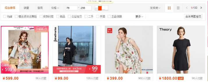 虽然我们搜索连衣裙,会有上千万的宝贝。但是我们一定要看到,衣服的的款式、风格、品牌、材质、每个人的购买热点等是非常多样性的。在这里只有和你相同,相似的宝贝才有可能和你有竞争的交集。这样经过筛选后竞争对手会少很多!我们看下图,“连衣裙”这个千万宝贝的大类目,在我们限制条件之后,我们发现,类似的宝贝已经只有39页。